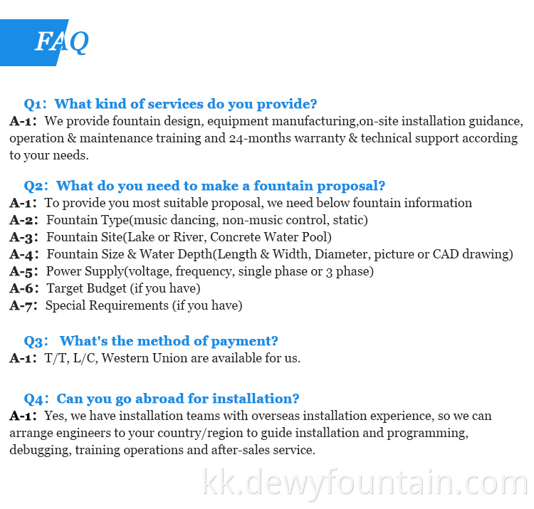 Pond fountain, sculpture fountain, wall fountain, waterfall, garden fountain, pool fountain, swing fountain, fountain nozzles, customized fountain, fire fountain